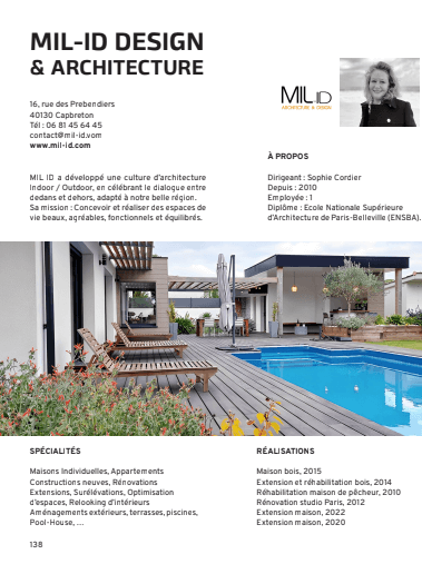 L’agence est installée depuis 2010 en Aquitaine avec l’envie d’aborder les projets dans leur entièreté sur le plan de l’architecture, de l’agencement et du design.
