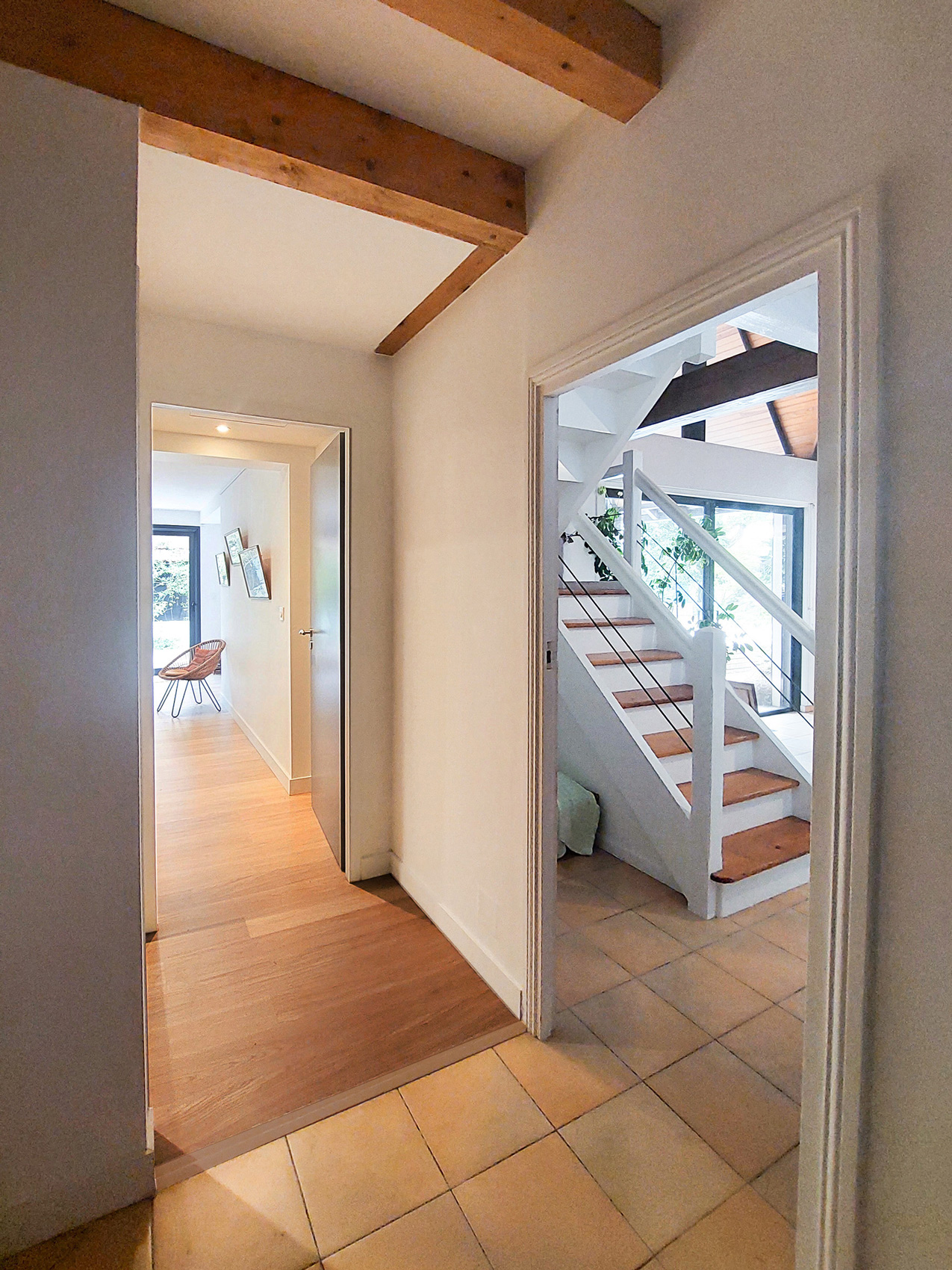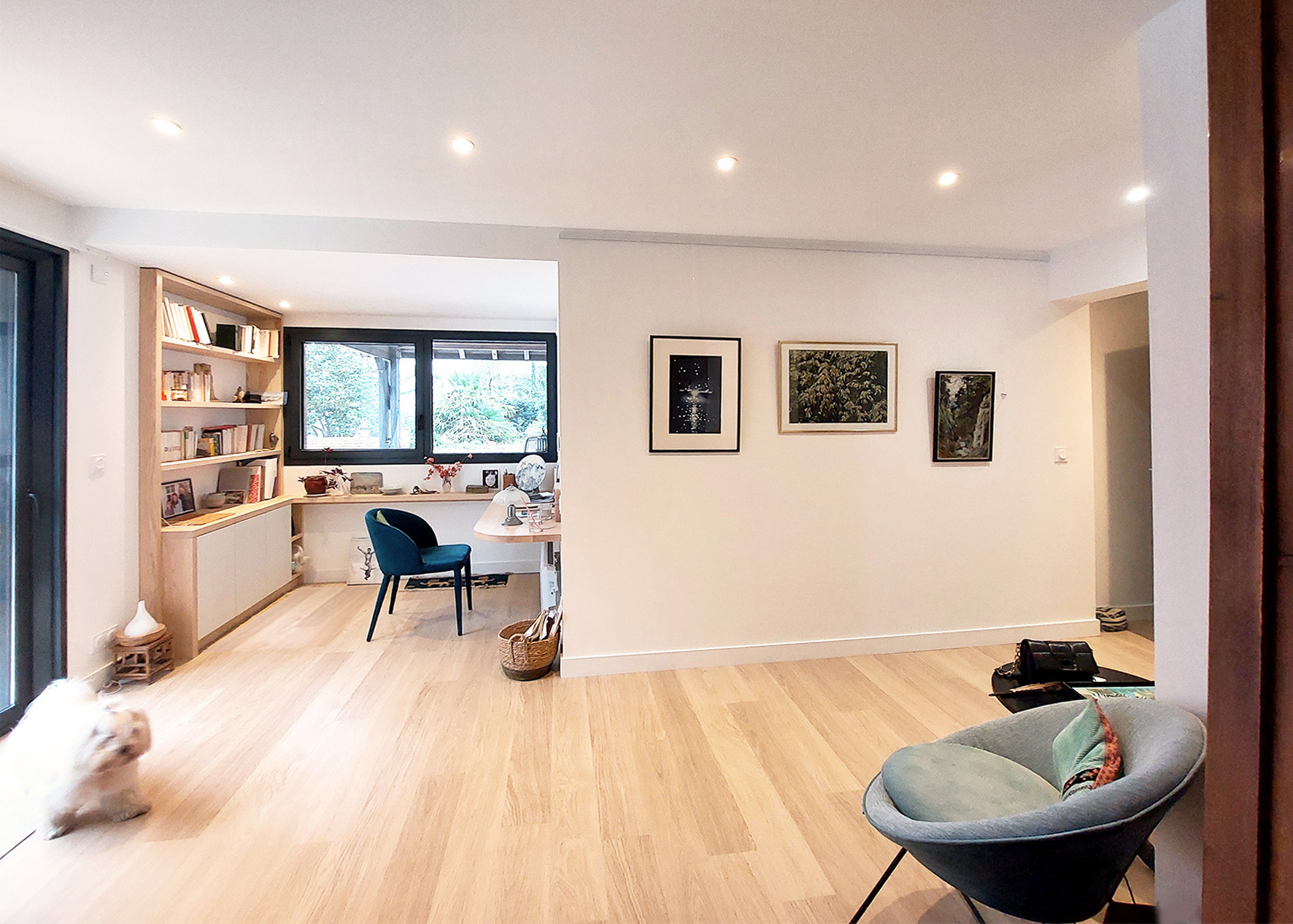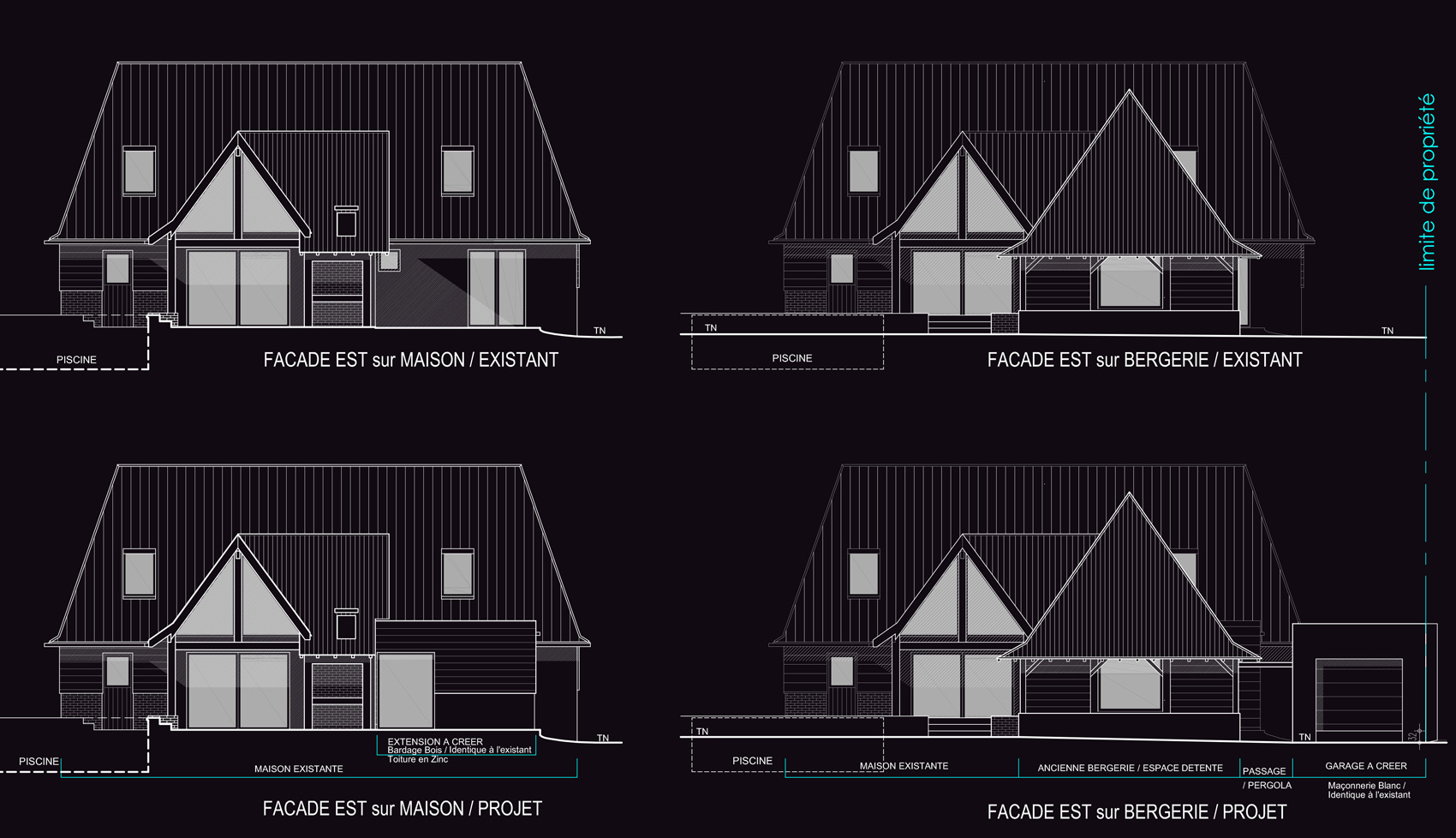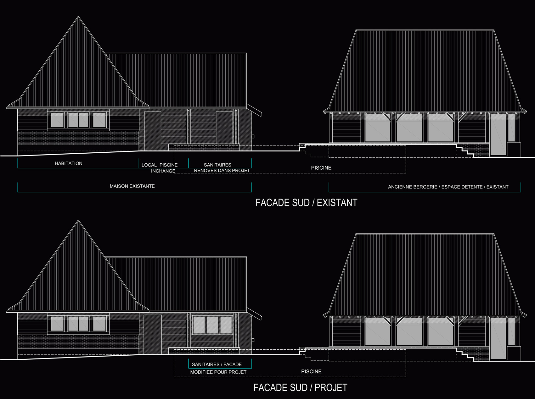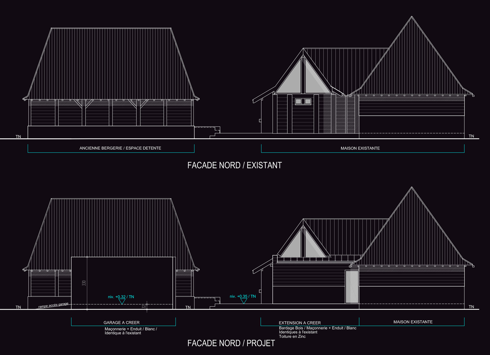 Les propriétaires souhaitant y vivre à l’année veulent agrandir les chambres du rez-de-chaussée et ajouter un garage, sans altérer l’harmonie du lieu.