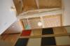 Les clients, envisageant une surélévation par le futur avec création d’une seconde salle d’eau, de deux vraies chambres et d’une terrasse sur une partie du toit accessible par un escalier en métal, le grenier aménagé en dortoir a été recouvert d’un plafond en OSB pour donner l’idée d’une cabane provisoire, inachevée.